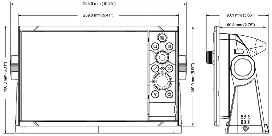 The Zeus 3S 7" chartplotter is designed for flexible installation, whether on its included U-bracket or recessed into a console. The package includes everything needed for quick setup: the display, a panel mounting kit, a protective cover, corner clips, a power cord with fuse holder, and a bracket mounting kit.